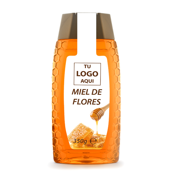 Dosificador de miel de 350g. Podrás adquirirlo con nuestras marcas o ¡desarrollar la tuya!