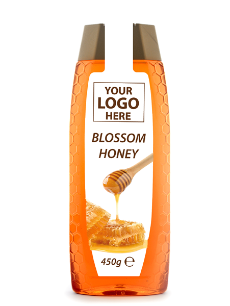 Dosificador de miel de 450g. Podrás adquirirlo con nuestras marcas o ¡desarrollar la tuya!