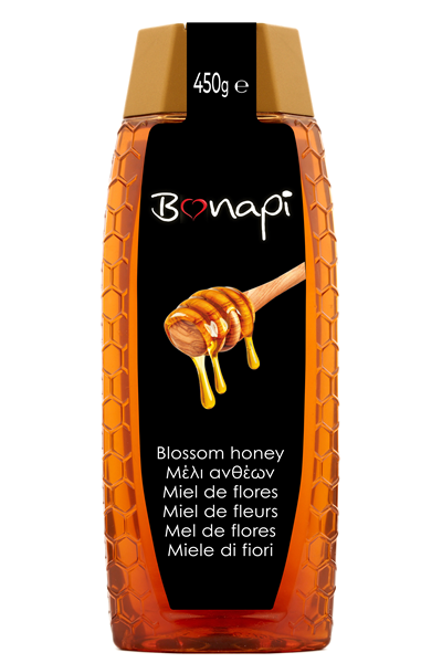 Dosificador de miel de flores marca Bonapi. Formato de 450g.