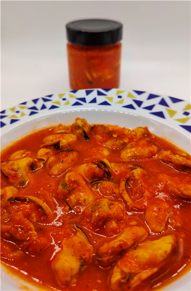 Mejillones elaborados en un salsa gallega con tomate y con un ligero toque picante