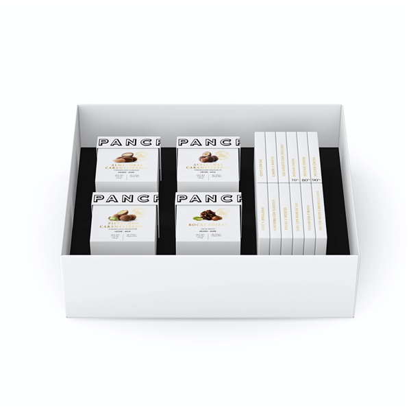 Luxury Box almendra Marcona caramelizada recubierta de chocolate con leche y chocolate negro