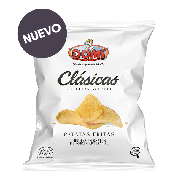 Patatas fritas DOMI presenta su nueva gama "SELECCIÓN GOURMET" sabor Clásicas. Materia prima de extraordinaria calidad seleccionada cuidadosamente y fritas en sartén en Aceite de Girasol Alto Oléico. Un sabor delicado y único debido a su minuciosa selección. Una nueva propuesta que seguro será una experiencia gastronómica única. Las patatas se seleccionan, limpian, pelan y pasan un estricto control de calidad antes de ser envasadas para mantener su frescura y crujiente característico.