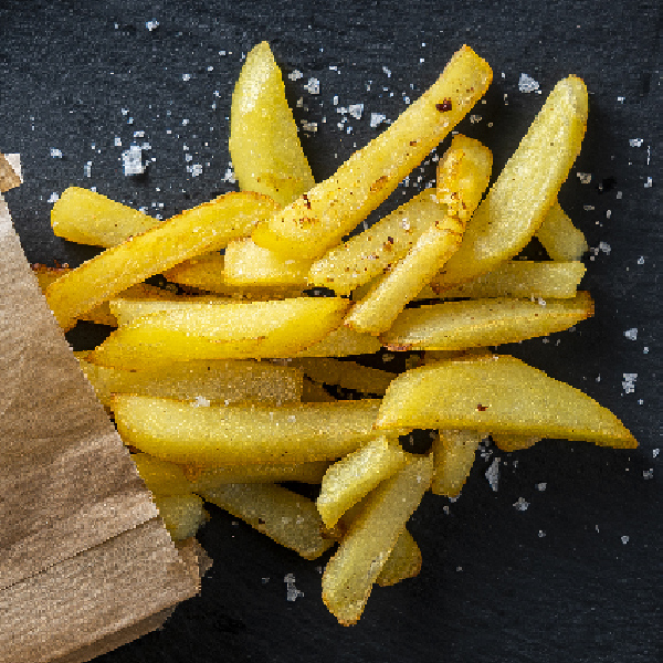 Patatas peladas, cocidas al vapor y envasadas al vacío cortadas en forma de bastón.