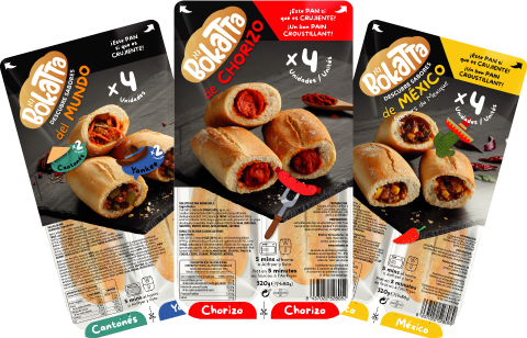 Bokatta: clásico “preñao” de Chorizo; Mexicano, carne de vaca, verduras y chili, y Sabores del Mundo