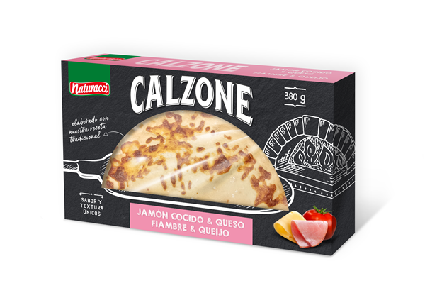 Naturacci: Pizza Calzone con corteza crujiente al hornearlo. La receta clásica incluye tomate, jamón y queso de alta calidad