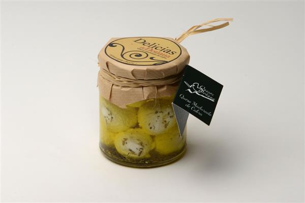 Bolitas de Queso de Cabra, maceradas en aceite con Albahaca.