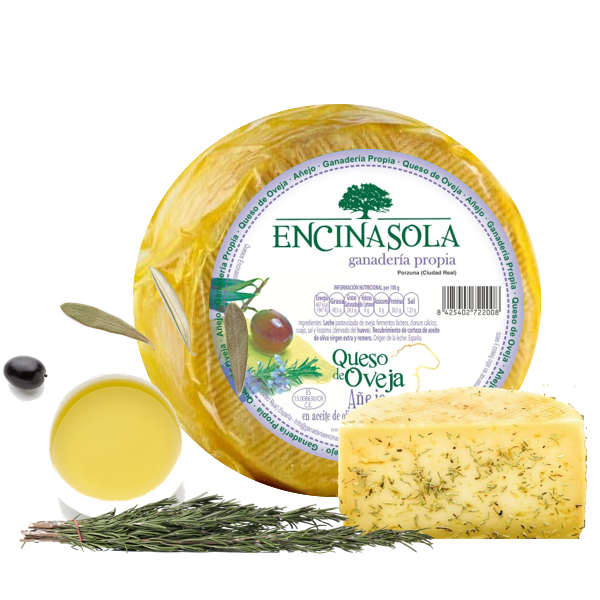 Queso de oveja añejo envejecido en aceite de oliva virgen extra y romero durante 12 meses