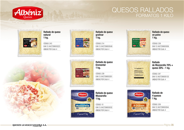 GAMA DE DIFERENTES QUESOS RALLADOS EN FORMATO DE 1KG