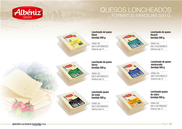 GAMA DE DIFERENTES QUESOS LONCHEADOS EN FORMATO DE 500G
