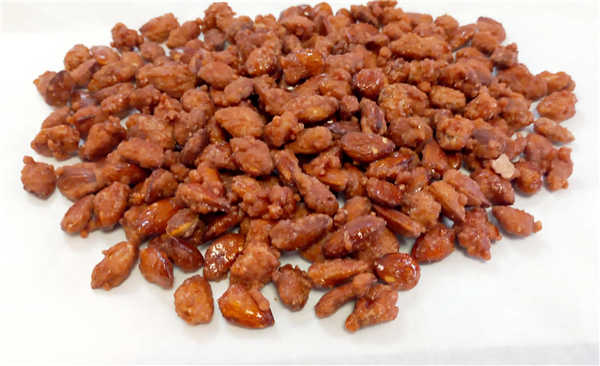 Almendra tostada cubierta con capa de caramelo crujiente