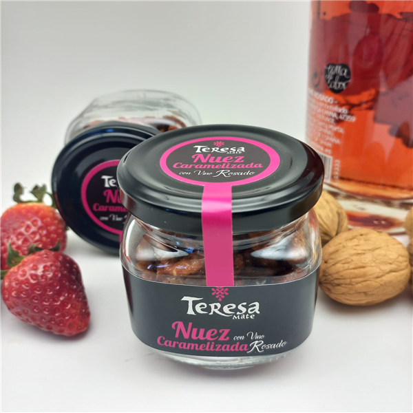 Integrando los viñedos, nuestras nueces se caramelizan con reducciones de vino tinto, rosado y blanco.