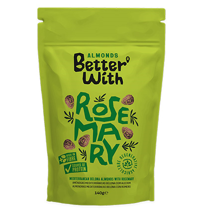 Almendras tostadas con el aroma fresco y herbal del romero.