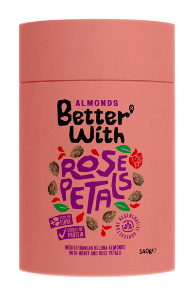 Almendras suaves con un toque floral de pétalos de rosa.