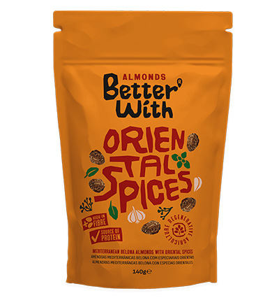 Mezcla exótica de especias orientales sobre almendras tostadas.