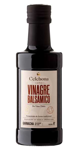 Vinagre balsámico artesanal con vino de uva tinta seleccionada y mosto de uva variedad Garnacha.