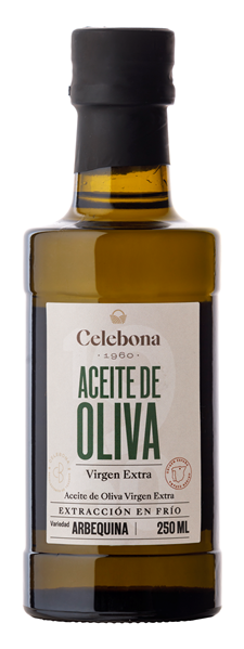 Aceite de Oliva Virgen Extra que se extrae de aceitunas de la variedad arbequina.