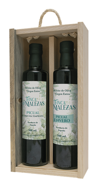Wooden case 2 bottles. Extra Virgin Olive Oil of Early Harvest and Envero 500ml