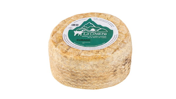 La Covacha goat's milk cheese, cured with a minimum of 120 days of maturation. Deep and concentrated flavour with a remarkable lactic intensity that evolves towards roasted and toasted nuances, reminiscent of walnuts and almonds. Its texture is firm and with a prolonged aftertaste that leaves a persistent sensation on the palate.La Covacha has maintained an unwavering commitment to artisanal cheese making, using traditional techniques that preserve the authentic flavors of the Sierra de Cádiz. The milk used comes from goats, which graze within a radius of 20 km around the cheese factory, located in a natural environment at an altitude of more than 700 metres.