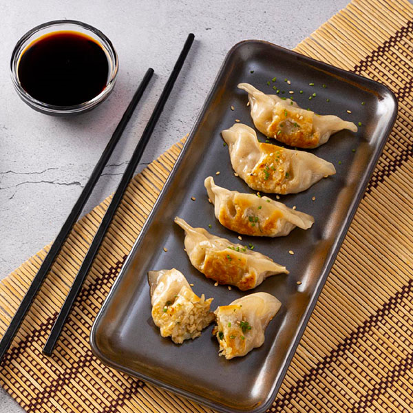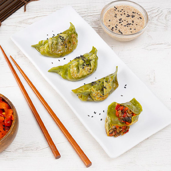 Roasted vegetable gyoza. Delicious combination of vegetables with an incredible smoky flavour.