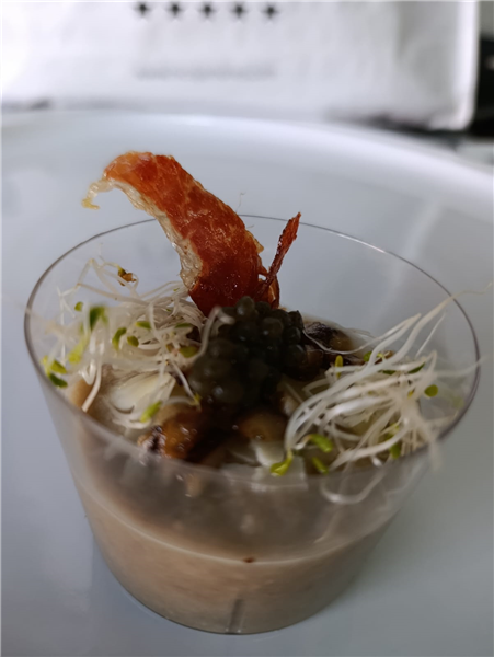 Chef Sergio Ballesteros will be at our booth preparing exquisite tastings with our Iberian ham stock, vegetable cream with Iberian ham, and boletus and mushroom cream with Iberian ham. Among the recipes you'll be able to enjoy are: Iberian ramen with Iberian ham stock, bamboo shoots, dehydrated mushrooms, crispy ham, and chashu. Vegetable cream with coconut milk, crispy pumpkin seeds, and sprouts. Boletus and mushroom cream with parmesan, crispy ham, and fresh sprouts. Don't miss this opportunity to try unique and delicious combinations. We look forward to delighting you with the best of our products!