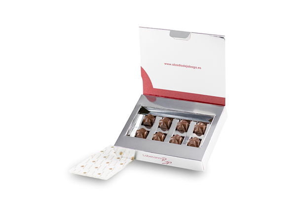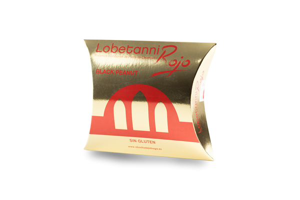 Cajita 8 bombones chocolate con leche rellenos de praliné de cacahuete "Lobetanni" 55g. Sin gluten.