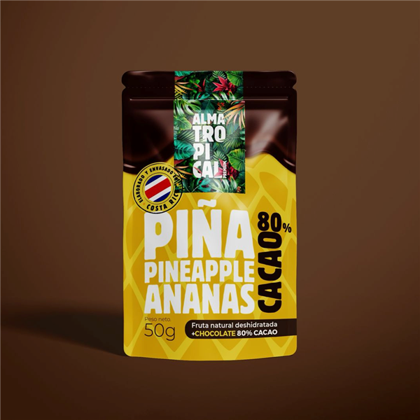 Piña Deshidratada 100% Natural con Chocolate al 80% cacao de Costa Rica.