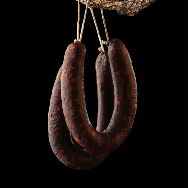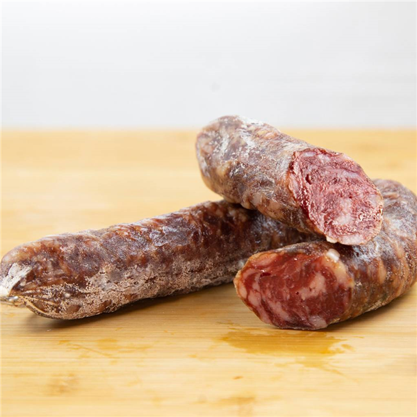 SALCHICHON HERRADURA EXTRA elaborado con tripa natural a base de magros de cerdos grasos.
