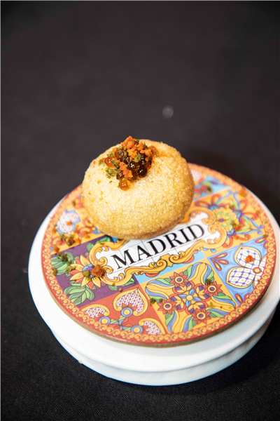14:00-15:00h. U.C.A.M. Carpaccio de solomillo de la cooperativa Ganademad, con ajo blanco de puerros y espárragos encurtidos de Madrid Rural. Polvorón de AOVE Ozzo Madriz en una Gota, de Recespaña. Maridaje con vinos de Recespaña. Elaborado por el chef Juan Pozuelo.