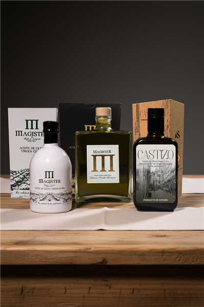Magister Maestro de Almazara extra virgin olive oil: made from olives from centuries-old olive trees located in the Sierra del Sur de Jaén, at an altitude of over 1,000 metres. This privileged location and early harvesting, during the first week of October, give it a fresh, intense and balanced flavour.