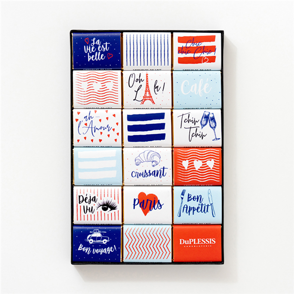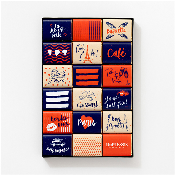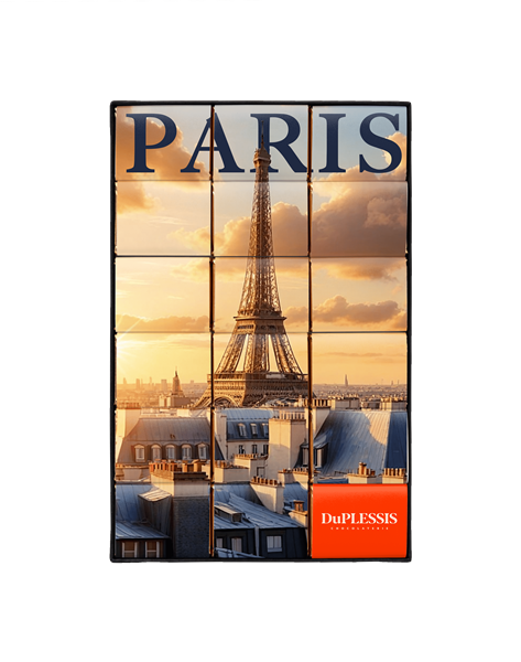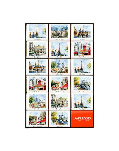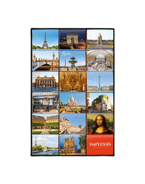 We founded Chocolaterie DuPLESSIS in 1996 with an idea as simple as it was innovative: to create quality chocolate Napolitains, turning this little treat into a gourmet delight. "Napolitains" : the name invites relaxation and a sense of escape. It soon inspired a new idea : to take our customers on a journey with our chocolates ! How ? By featuring the images of your country’s most beautiful monuments and landmarks on the wrappers of our Napolitains.